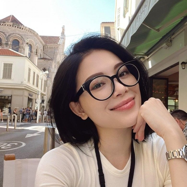 Trang điểm nhẹ nhàng nên cô cần sự trợ giúp từ chiếc kính mắt để khiến bản thân trẻ trung hơn, đồng thời hạn chế 1 số tác nhân tới từ ánh sáng xanh của màn hình công nghệ tới bọng mắt.