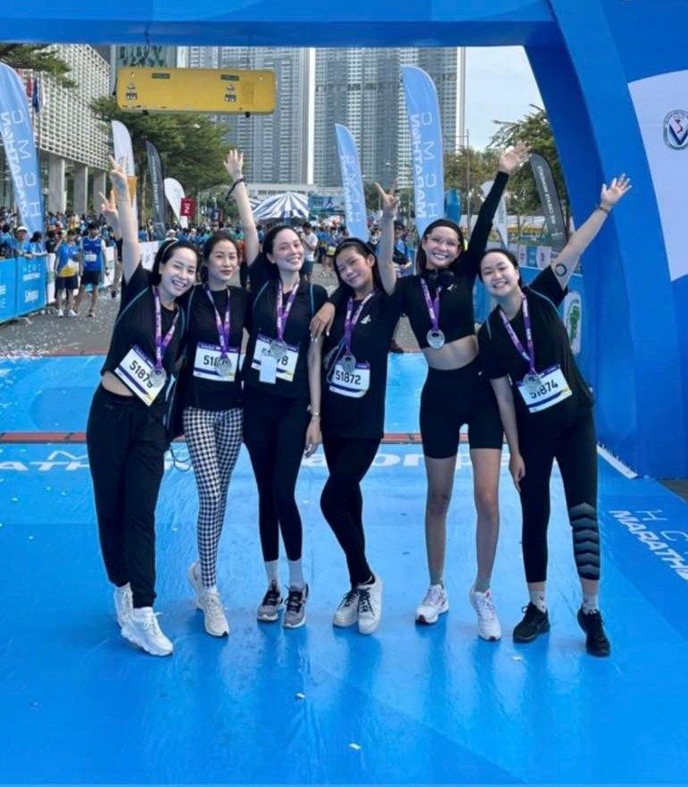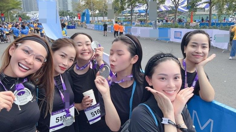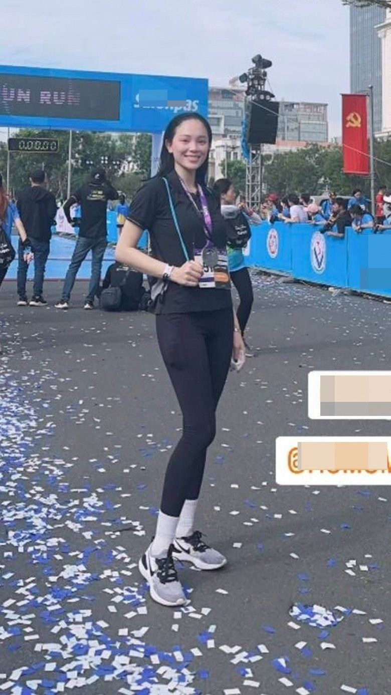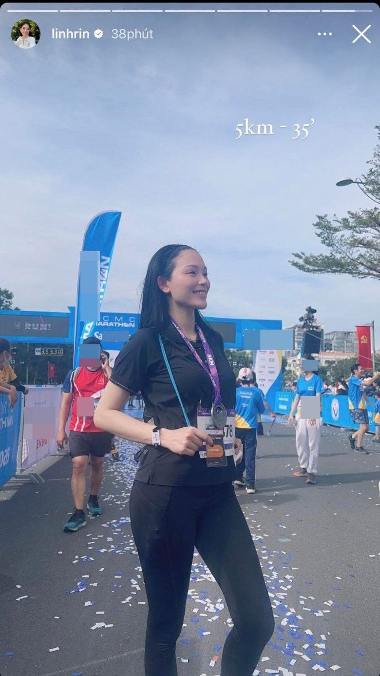 Linh Rin tự hào với thành tích chạy 5km trong 35 phút của mình. Nàng mẫu diện đồ màu đen tối giản tham gia giải chạy cùng cộng đồng.