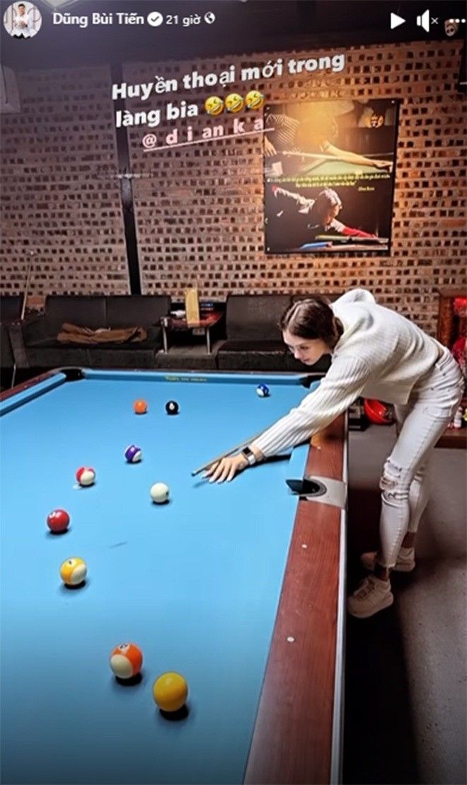 Gần đây, bà xã Bùi Tiến Dũng còn bắt đầu cùng chồng tập chơi bida, giúp đốt cháy mỡ thừa nhẹ nhàng.