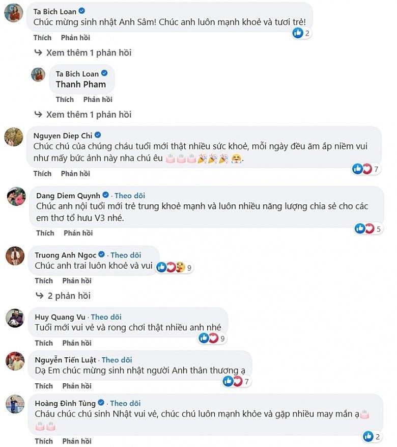 Không ít MC - BTV, nghệ sĩ nổi tiếng đã gửi lời chúc mừng tuổi mới đến MC Lại Văn Sâm, trong đó có Tạ Bích Loan, Diễm Quỳnh, Diệp Chi, BLV Quang Huy...