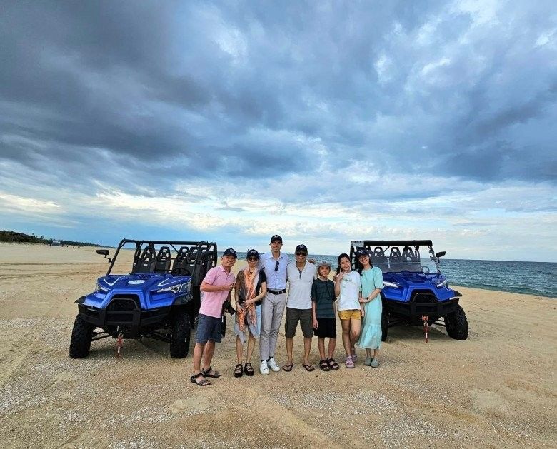 Trong bức hình, MC Lại Văn Sâm cùng vợ ngồi trên xe jeep, phía sau là 2 cháu nội. Bà xã của nam MC "cực ngầu", bà để tóc tém, đội mũ lưỡi trai, cầm vô lăng trong khi chồng ngồi ghế phụ.