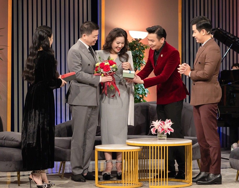 Chính vì thế, món quà đặc biệt mà Đăng Dương kỳ công chuẩn bị tặng vợ cùng lời nhắn: "Anh cảm ơn cuộc đời đã cho anh gặp em như là một định mệnh. Mãi yêu em!” đã khiến cô vô cùng cảm động. Kim Xuyến cho biết: "Lấy nhau bao nhiêu năm, lần này mình bất ngờ nhất!" Trong chương trình, Kim Xuyến cũng tặng chồng một món quà gắn với công việc ca sĩ của NSƯT Đăng Dương.