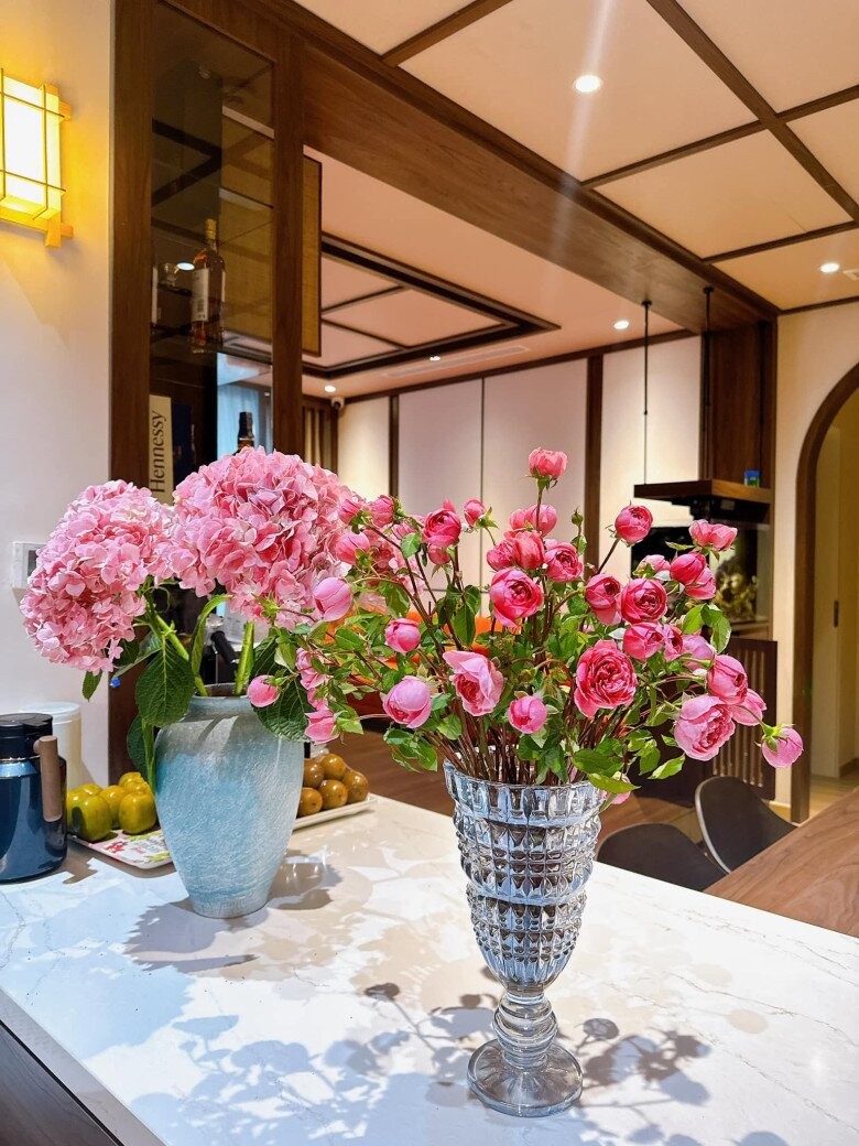 Đặc biệt hơn, mẹ chồng cô - nghệ sĩ Lưu Nga đã gọi qua video, kiên nhẫn hướng dẫn con dâu từng chút một, từ cách chỉnh hướng cành đến nhắc sửa từng chi tiết nhỏ. Dù ở xa, bà nội Benly vẫn không quên góp phần làm cho góc nhà con cháu thêm xinh. Mai Linh thổ lộ: "Sáng bình yên ngắm hoa nở rực rỡ. Video từ xa, bà nội Benly hướng dẫn cắm hoa, còn nhắc chỉnh cái này, sửa cái kia cho đẹp hơn. Đáng yêu hết sức luôn ạ".