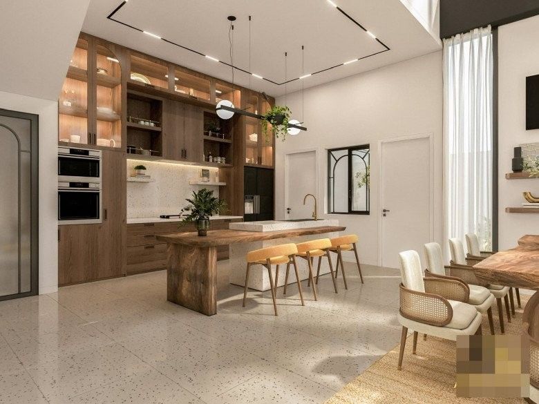 Khu vực bếp và bàn đảo.