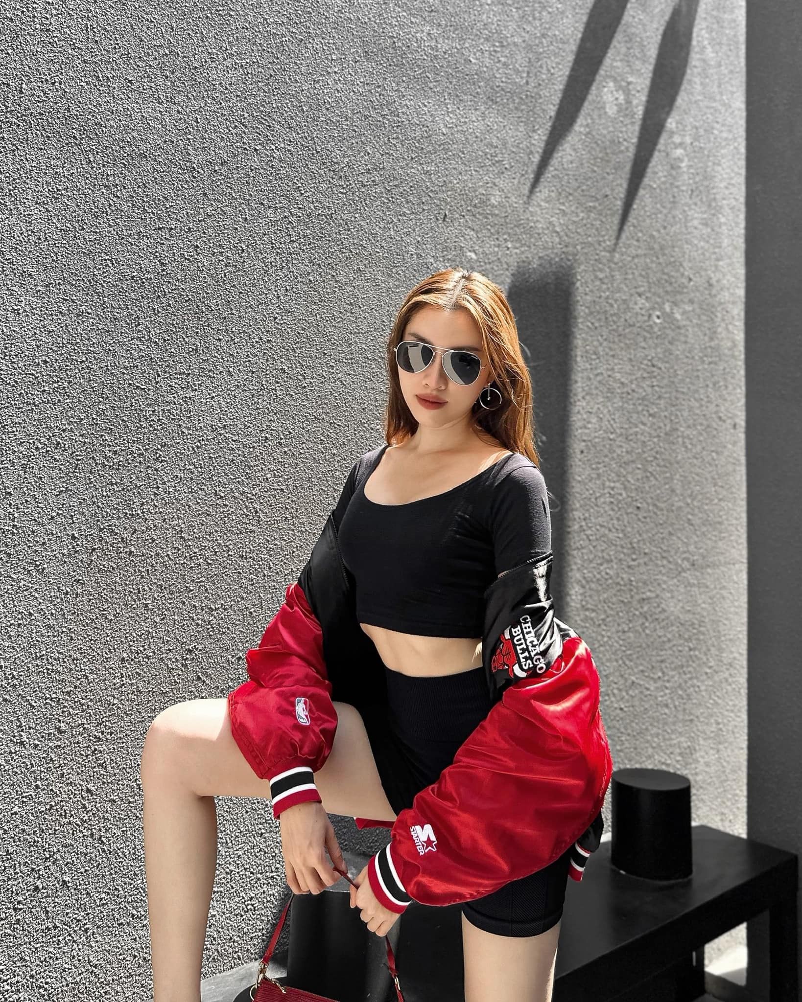 Người đẹp "nhập gia tùy tục" với thiết kế khoe "đôi chân kiếm Nhật" với áo bomber xì-tin.