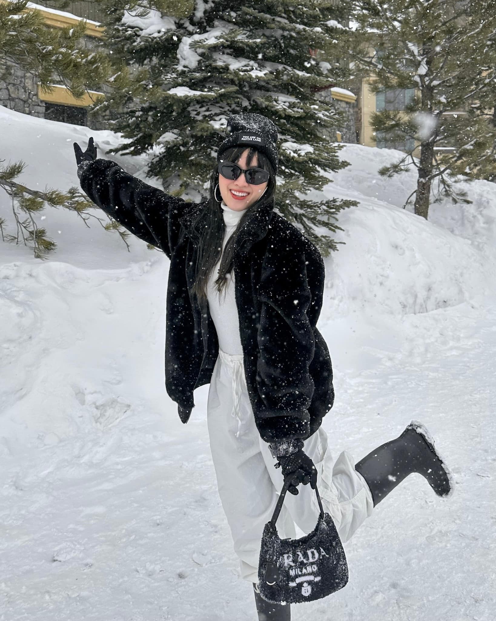 Thanh Thanh Huyền dí dỏm chia sẻ lên trang cá nhân: "Genz hướng ngoại đi Mỹ mang 10 bộ bikini tắm biển sống ảo, xui gặp ngay bão tuyết nhưng vẫn quyết tâm không để em nào nằm lại trong vali, belike (tạm dịch: giống như)".