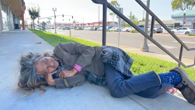 Hình ảnh Kim Ngân đầu tóc rối bù, da bọc xương, ngủ luôn ngoài đường do Youtube Bé Võ chia sẻ.
