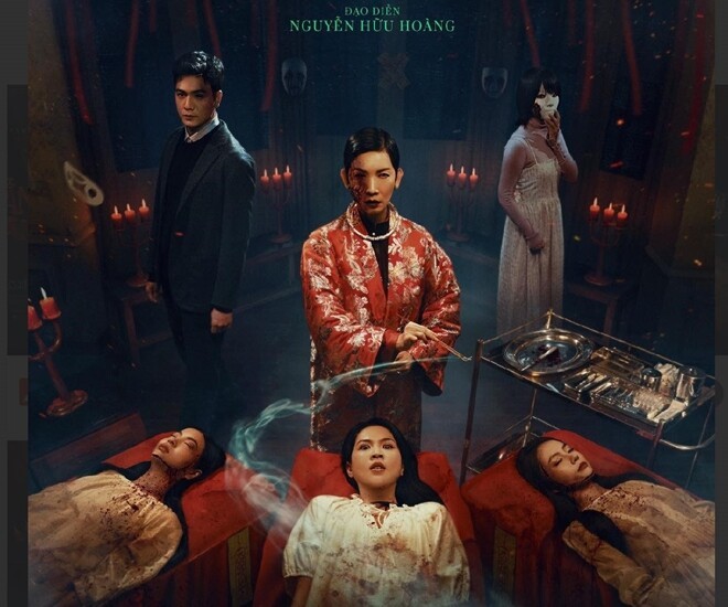 Poster đánh mạnh vào thị giác bởi không gian u ám của căn phòng phẫu thuật bên trong bệnh viện thẩm mỹ. Bà chủ thẩm mỹ viện Xuân (Xuân Lan) đứng ở vị trí trung tâm, khoác trên mình bộ cổ phục đỏ, nửa gương mặt nhuốm màu máu, ánh mắt và hành động toát lên thần khí tà ác của kẻ nắm quyền lực chi phối tất cả. Trong khi, nữ chính - bác sĩ Thanh (Ngọc Trinh) - giống như bị chế ngự trên giường phẫu thuật, lộ vẻ sợ hãi. Hai cô gái khác do Rima Thanh Vy và Phương Linh thủ vai cũng trong tình cảnh tương tự, chìm vào hôn mê.