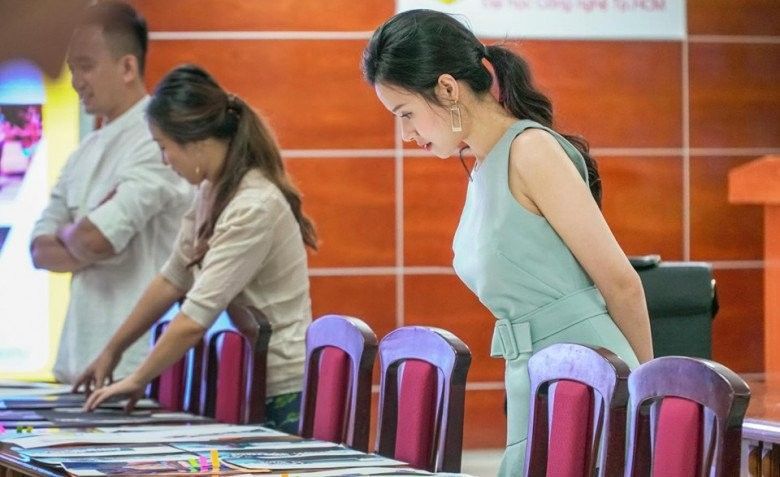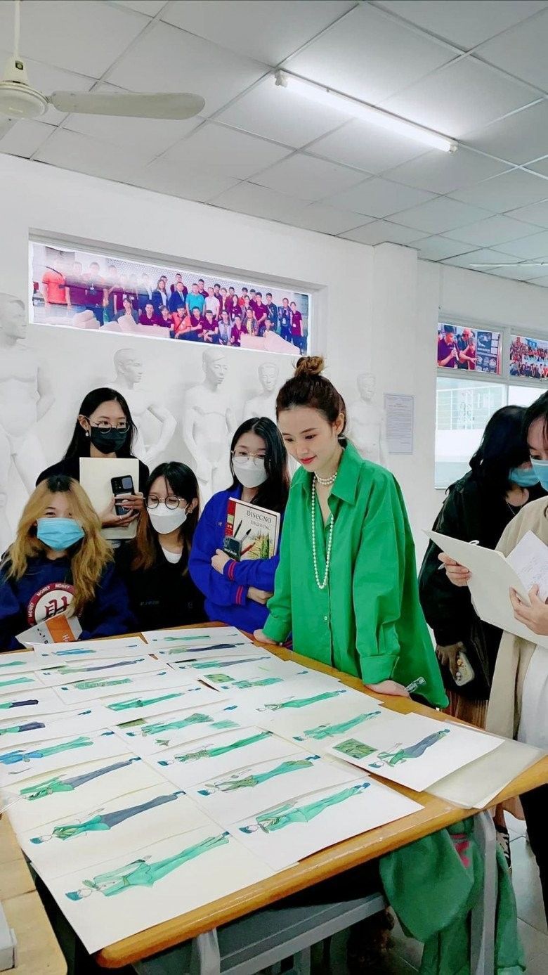 Là người giảng dạy khoa thời trang nên có nhiều set đồ, Midu dù mặc tinh giản nhưng lại rất thời trang với các điểm nhấn nhỏ như vòng cổ, túi xách.
