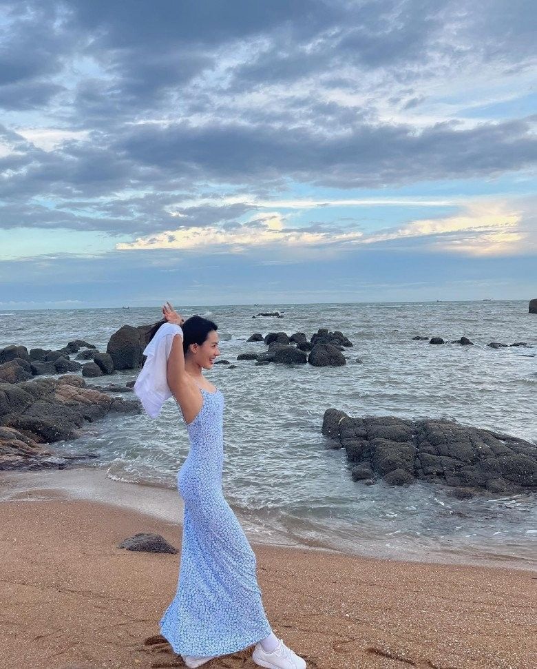 Váy hai dây ôm sát hình thể được trưng dụng để đi biển.