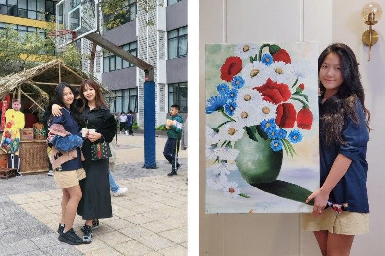 Khi đi học, dù học trường quốc tế - nơi khá cởi mở về chuyện làm đẹp và ăn mặc, Chíp vẫn không cần phấn son vẫn toát lên nét đẹp trong veo, đúng chất một cô học sinh cấp 2.