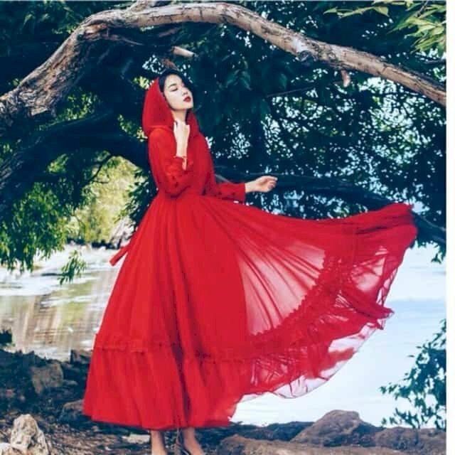 Đặc biệt, khi đi biển, Giáng My rất yêu thích những kiểu váy maxi dài thướt tha với chất liệu voan mỏng nhẹ. Cô tạo dáng váy tung bay trong gió trông vô cùng trẻ trung.
