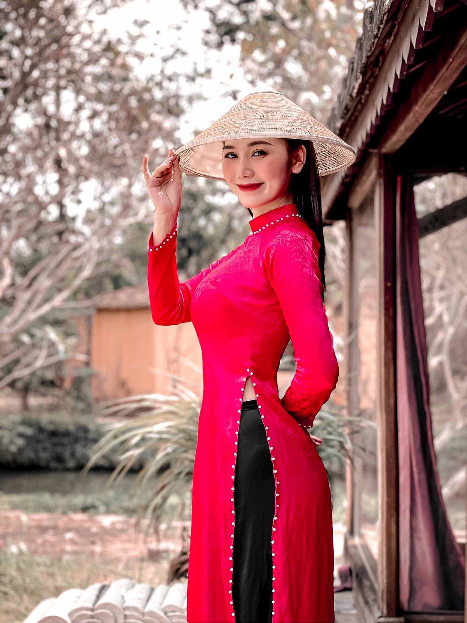 Hoàng Kim Chi không có quá nhiều bộ hình áo dài nhưng cô cũng từng khoe sắc trong bộ màu đò trước đó.