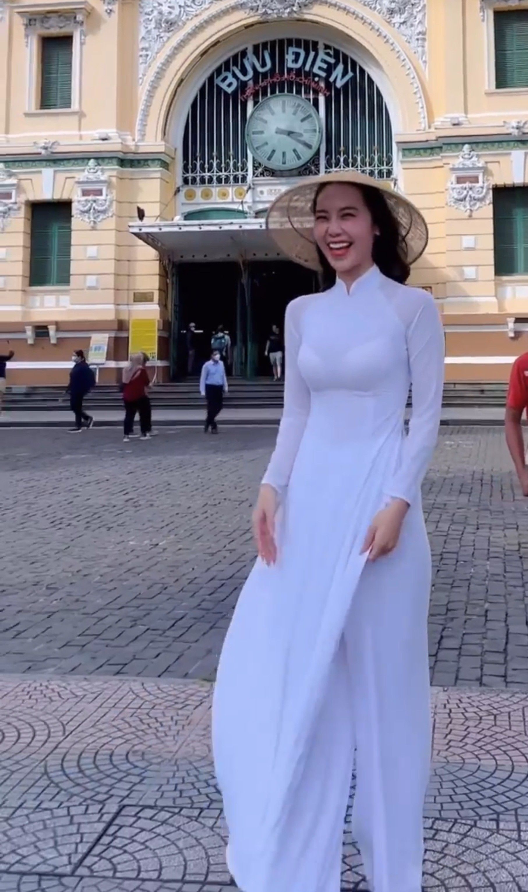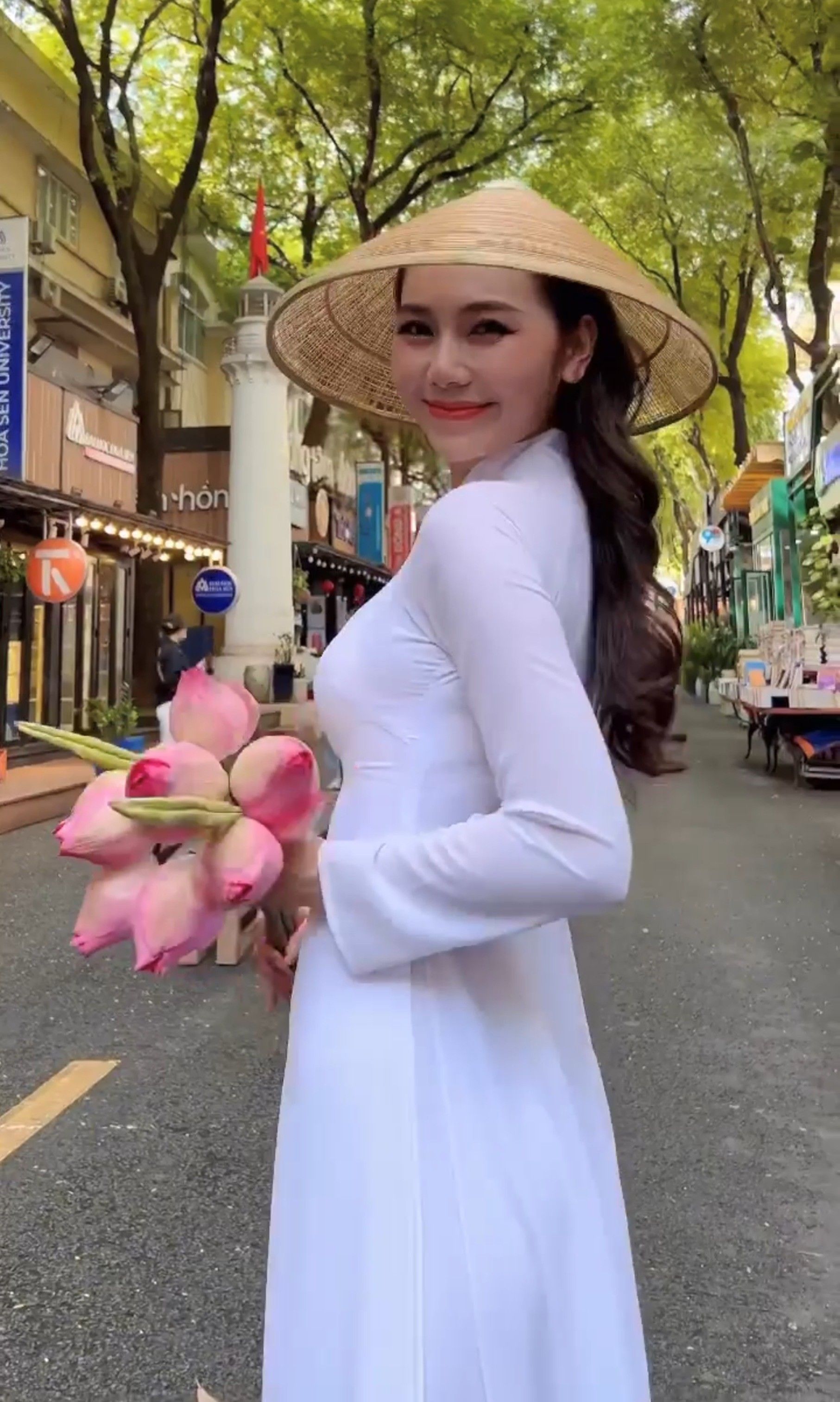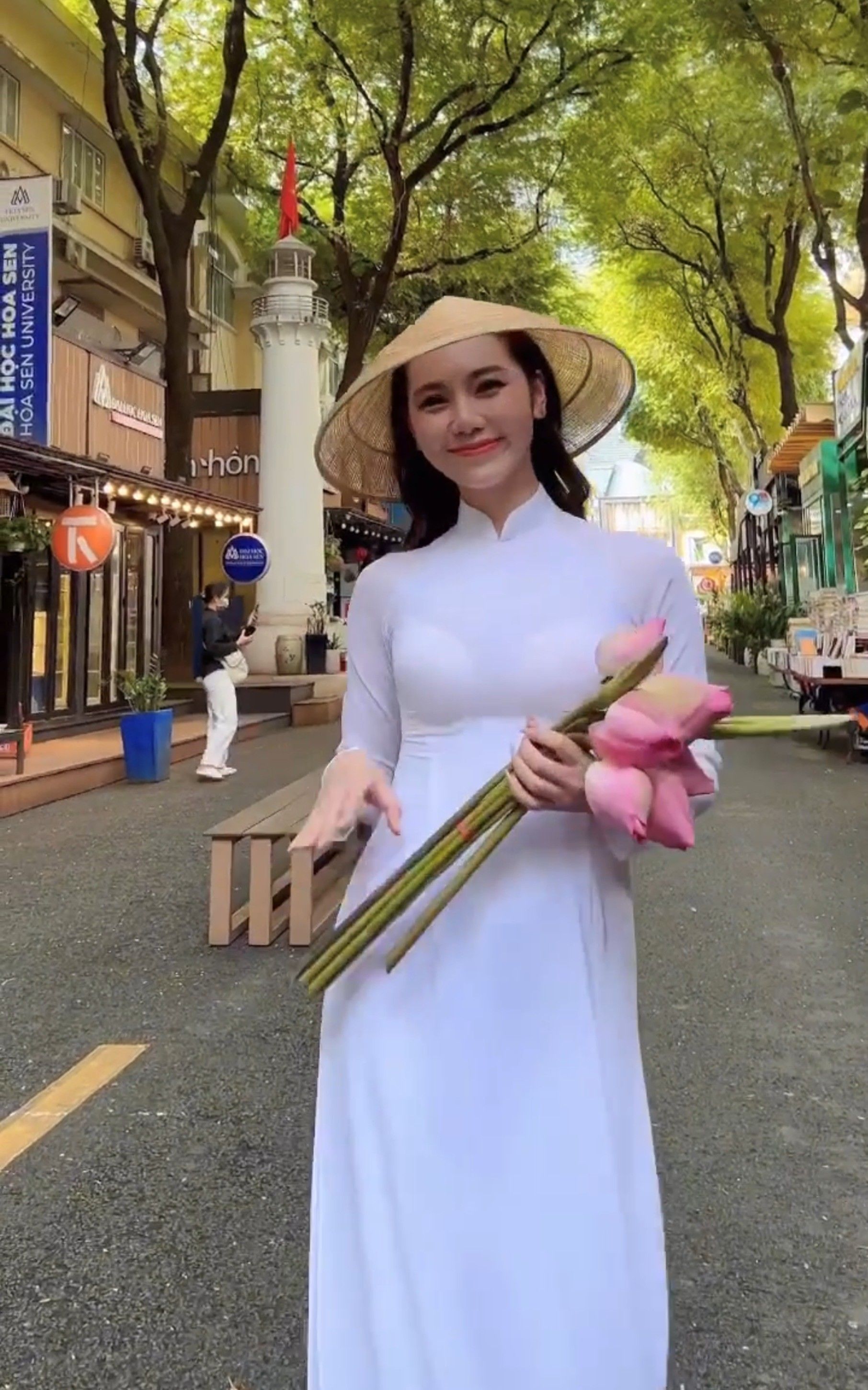 Hoàng Kim Chi diện áo dài trắng thả dáng thu hút hàng loạt fan xin chụp ảnh cùng.