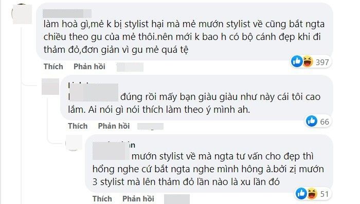 Vậy nhưng, các diễn đàn mạng, dân tình phủ sóng với các quan điểm cho rằng, cô nên thay đổi stylist vì sự xuất hiện nhận về "bão chê bai".