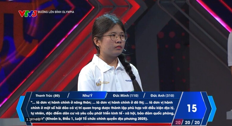 Đức Anh là thí sinh có phần Khởi động tốt nhất, sự bình tĩnh giúp nam sinh Hải Phòng giành được điểm số cao nhất là 80 điểm, đứng ở vị trí số 1. Kết thúc 2 lượt Khởi động riêng và chung, Đức Minh có 40 điểm, Thanh Trúc có 10 điểm, Như Ý có 5 điểm.