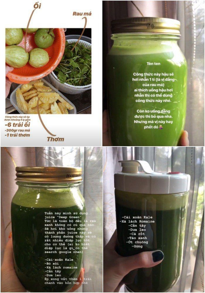 Đồng thời, người đẹp nhóm Mây Trắng còn chăm bổ sung các loại sinh tố, nước ép để cải thiện làn da lẫn vóc dáng. Thông qua những loại thức uống giàu vitamin này, cơ thể sẽ tăng cường khả năng chuyển hóa năng lượng, tránh tích mỡ.
